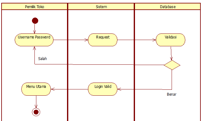 Contoh activity diagram login. Activity diagram obat masuk. Activity diagram ini dibuat berdasarkan sebuah use case atau beberapa use case dalam use case diagram. Respon sistem akan meverifikasi username dan password kondisi benar akan tampil menu utama jika salah maka akan masuk ke login. Balik lagi ke tutorial tentang uml pada kesempatan kali ini kami akan memberikan kalian contoh lain dari diagram diagram yang berada pada uml. Pada tutorial ini kita akan membahas tentang activity diagram. A uml activity diagram showing admin login activity diagram.