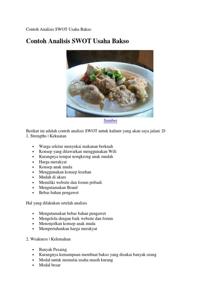 Contoh analisis swot organisasi produk makanan dan diri sendiri materi pembahasan kali yakni tentang contoh analisis swot yang akan guruakutansicoid paparkan secara lengkap mulai dari pengertian tujuan dan contohnyanah untuk lebih jelasnya mari langsung aja simak ulasan berikut ini. Untuk contoh analisis swot usaha makanan yang pertama adalah strengths yang berarti kekuatan.