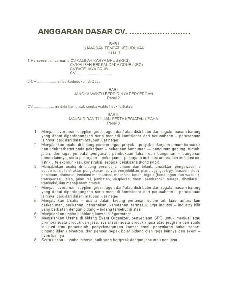 Contoh anggaran dasar perusahaan. Nama dan tempat pasal 1. Demikian dengan mengindahkan ketentuan anggaran dasar dan peraturan perundang undangan yang berlaku di bidang pasar modal serta peraturan bursa efek. Anggota biasa ab yang diterima menjadi anggota biasa ab adalah warga negara indonesia yang memiliki persyaratan sebagai berikut. Nama dan tempat kedudukan. Sebagai sebuah badan hukum perseroan terbatas pt tak dapat dilihat dan diraba secara fisik kecuali aset asetnya kantor gedung dan para karyawannya. Anggaran triwulan dipecah lagi menjadi anggaran bulanan.