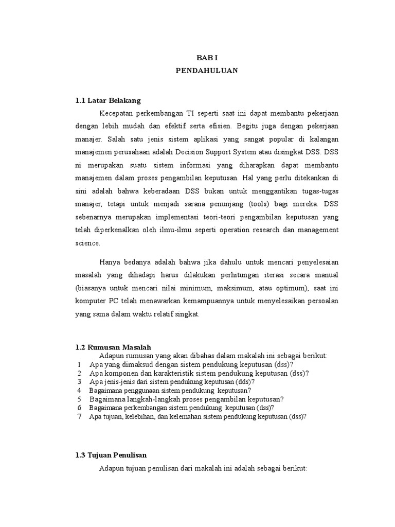 Sebuah aplikasi untuk menentukan kelayakan proposal kredit pada bank mandiri. Dss dapat membantu para manajer dalam mengambil keputusan dengan cara mengamati lingkungan dalam perusahaan.