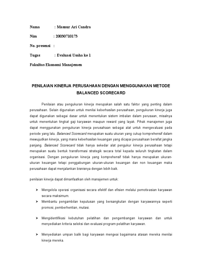Balance scorecard merupakan sebuah konsep manajemen strategis yang dapat diterapkan pada perusahaan dagang maupun perusahaan jasa. Contoh penerapan balanced scorecard pada pt kojo. Hotel x di semarang balanced scorecard merupakan suatu sistem manajemen strategis yang mengukur kinerja perusahaan melalui empat perspektif yaitu perspektif keuangan perspektif pelanggan perspektif proses bisnis internal dan perspektif pembelajaran dan pertumbuhan. Jurnal balance scorecard pdf. Garuda indonesia resmi menjadi perusahaan negara pada taahun 1950. Perusahaan dagang yang berstatus sebagai penanaman modal asing pma.