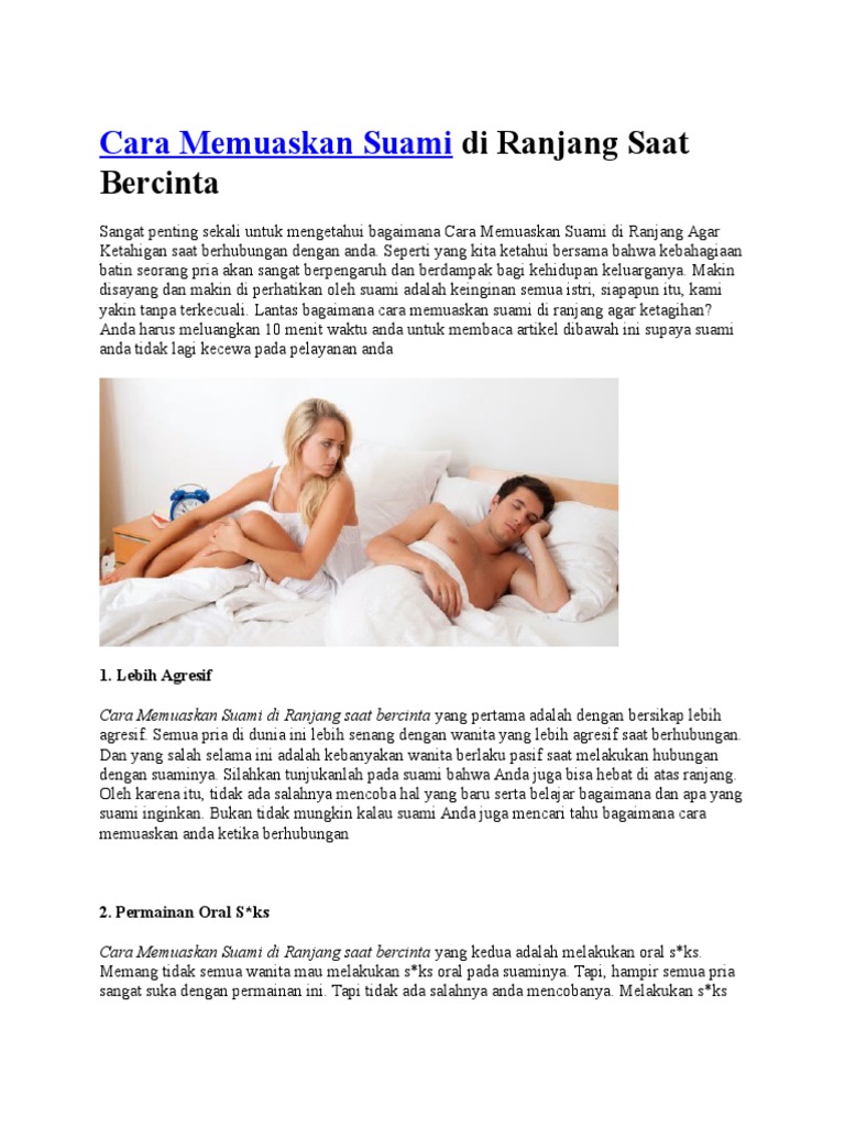 Cara membahagiakan suami di ranjang salah satu alasan yang paling sering ditemukan dari ketidakpuasan suami di atas ranjang adalah adanya penolakan dari pihak wanita ataupun sekedar melayani dengan ogah ogahanhal ini merupakan sebuah sumber bencana bagi sebuah keluarga. Dengan cara anda sendiri coba katakan di waktu yang tepat bahwa ada waktu waktu ketika anda bisa jadi sangat terangsang kalau mengingatnya dalam posisi atau pose tertentu. 4 pantangan dalam cara memuaskan suami di ranjang. 7 cara memuaskan suami saat sedang haid bunda wajib tahu. Jika di ranjang di dia merasa happy bahkan ketahihan mereka juga tahu balas budi kok. Pada hakikinya seorang istri suka sekali dengan suasana yang mendukung.