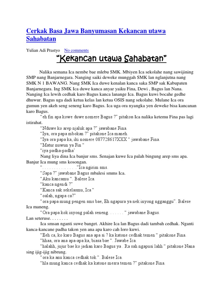 Contoh cerkak bahasa jawa persahabatan. Contoh cerkak bahasa jawa persahabatan. Jika dahulu cerpen hanya berpaku pada bahasa nasional indonesia. Salah satunya adalah bahasa jawa dalam bahasa jawa cerpen dikenal dengan sebutan cekrak. Maka sekarang tidak lagi demikian. Cerkak bahasa jawa mempunya ciri ciri sebagai berikut. Bagaimana kisah fira seorang wanita yang memiliki sahabat bernama galang menjalani hari hari mereka dengan penuh kebahagiaan.