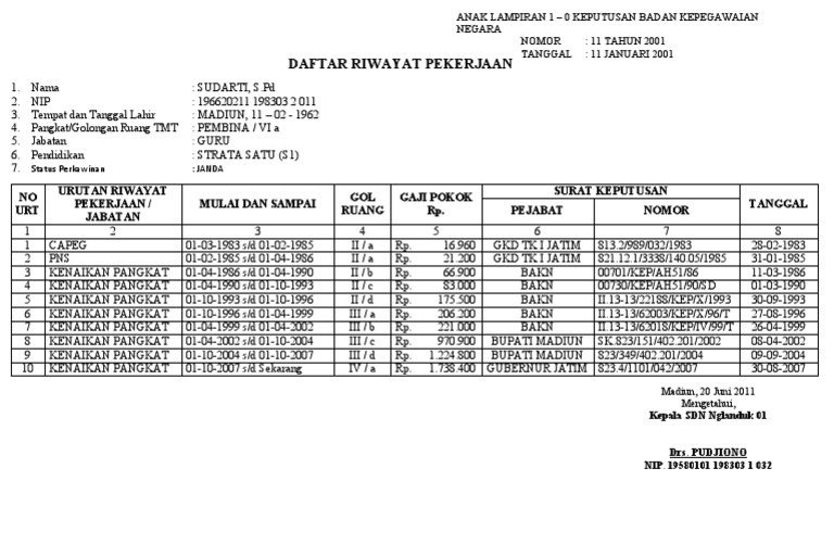 Contoh daftar riwayat pekerjaan pns. Pada kesempatan ini saya akan membagikan contoh formulir daftar riwayat hidup yang dapat digunakan untuk keperluan pnscpns yang dibuat pada kepala badan kepegawaian negara ri nomor 11 tahun 2002 tertanggal 17 juni 2002 tentang pengadaan pegawai negeri sipil pns. Contoh daftar riwayat hidup daftar riwayat hidup atau curriculum vitae adalah salah satu dari beberapa dokumen yang penting dan perlu anda miliki. Contoh formulir daftar riwayat hidup. Contoh daftar riwayat hidup cv yang baik dan benar terbaru 2019 apakah kalian ingin melamar pekerjaan. I ii b walikota sorong 8211150bkd 07 juli 2011 3 sk pegawai negeri sipil pengatur guru muda 01042013 sekarang pengatur ii c walikota sorong 8232213bkd2013 01 april 2013 demikian daftar riwayat pekerjaan ini saya buat dengan sesungguhnya. Surat dpcp berkas pensiun.