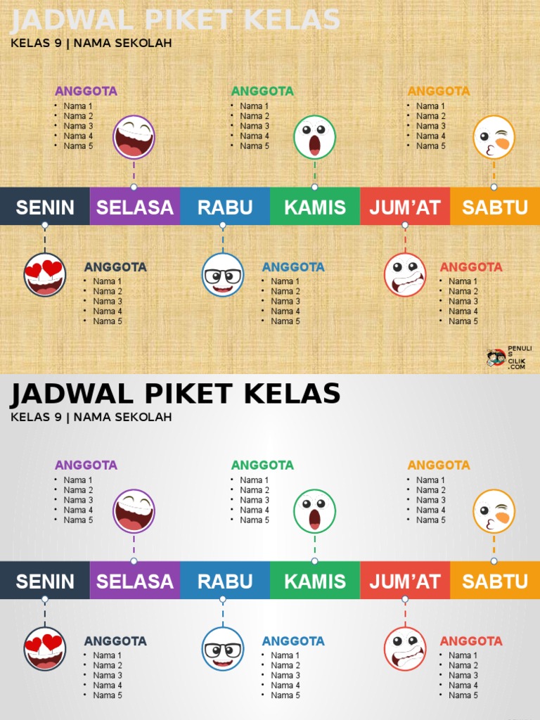 Contoh desain jadwal piket. 2018 agu 9 baca download contoh desain jadwal piket kreatif dan unik terbaru hanya di penulis cilik. Daftar di canva dan pilih contoh desain jadwal kelas gratis sekarang. Berikut ini saya poskan contoh desain untuk jadwal regu piket dan struktur organisasi kelas yang biasa dipasang di. Berikut ini contoh format jadwal piket kebersihan format word sebagai salah satu acuan guru saat menetapkan jadwal untuk para siswa dalam kegiatan kebersihan kelas di sekolah. Desain jadwal piket kreatif. Contoh desain jadwal pelajaran super keren.