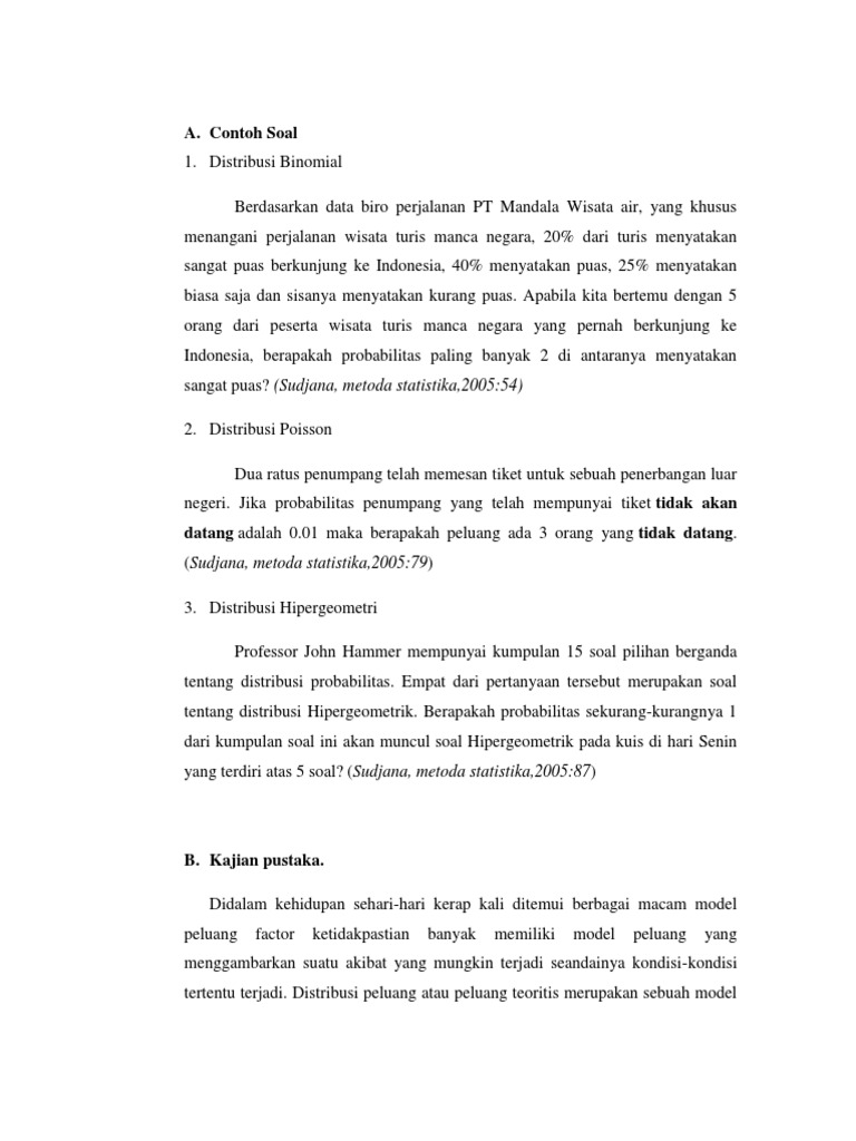 Contoh distribusi binomial dalam kehidupan sehari hari. Makalah distribusi binomial diajukan untuk memenuhi salah satu tugas mata kuliah probabilitas dan statistika yang di bina oleh bapak adam faroqi st mtoleh. Academiaedu is a platform for academics to share research papers. Makalah prob stat distribusi binomial 1. Soal dan pembahasan peluang tingkat smpsederajat contoh 1 pada pelemparan satu buah dadu hanya. Saleem april 9 2017. Distribusi binomial binomial distribution merupakan salah satu distribusi dengan variabel acak diskrit yang merupakan kajian dari statistika inferensial.