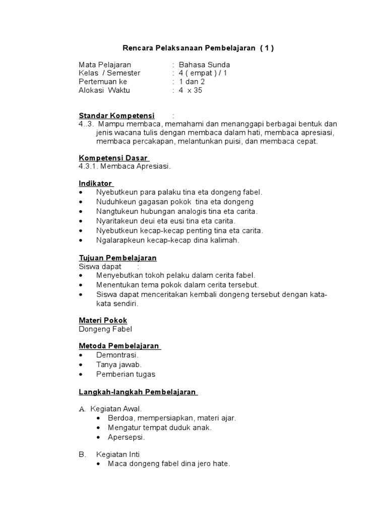 Rpp B Sunda Kelas 4 Smt 1 Doc