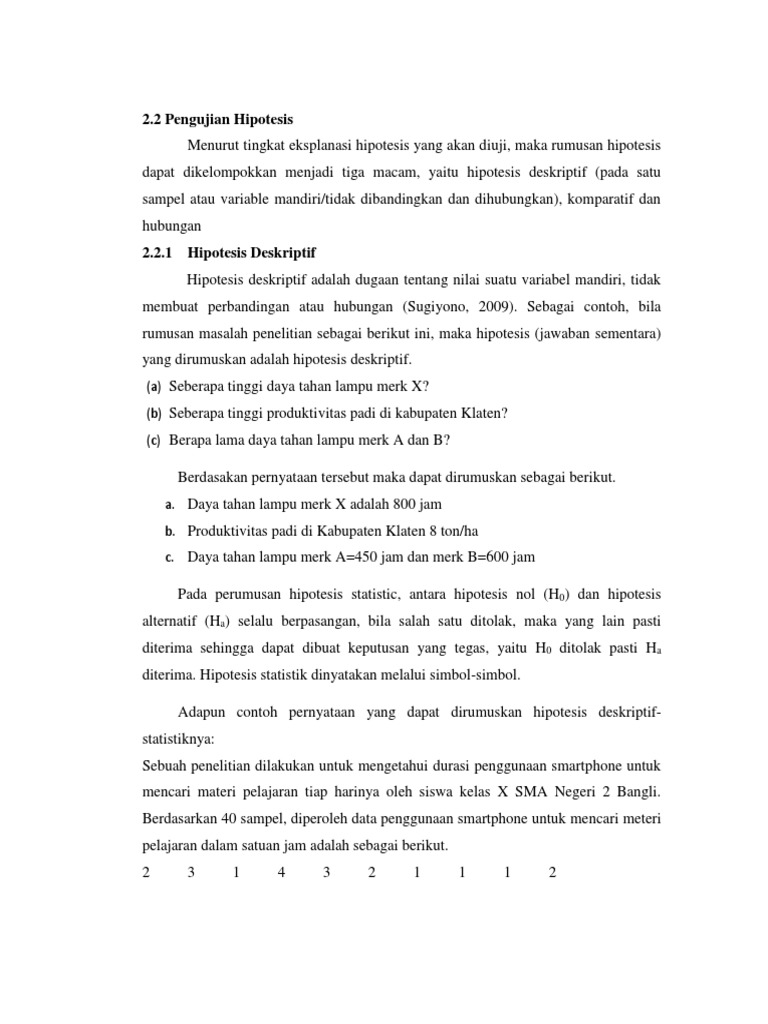 Dalam penelitian ada dua jenis hipotesis yang seringkali harus dibuat oleh peneliti yakni hipotesis penelitian dan hipotesis statistik. Contoh hipotesis penelitian ii hipotesis atau hipotesa merupakan jawaban sementara yang masih praduga untuk suatu masalah. Kita bisa memilih salah satu tentu yang paling sesuai dengan teori yang ada. Dalam hal ini untuk membuktikan keberaran hipotesa maka perlu dilakukan sebuah penelitian lebih lanjut. Dalam benak para pembaca saat membuka halaman ini atau saat mengklik tombol enter untuk mencari penjelasan tentang hipotesis pasti saya yakin setidaknya pernah mendengar istilah ini.