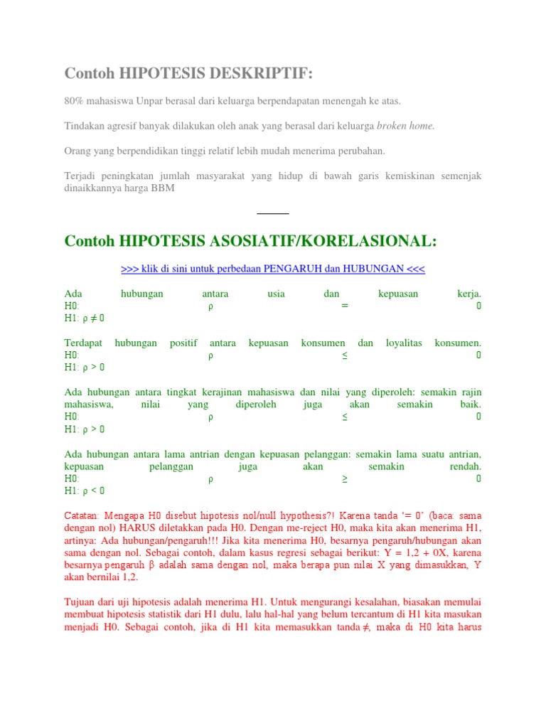 Contoh hipotesis h0 dan h1. Berenson et al 2006 menyatakan beberapa poin penting tentang hipotesis nol dan hipotesis alternatif sebagaimana dirinci sebagai berikut. 14 pengertian hipotesis menurut para ahli jenis dan contoh untuk pembahasan kali ini kami akan mengulas mengenai hipotesis adalah yang dimana dalam hal ini meliputi pengertian menurut para ahli. Hipotesis nol ho hipotesis nol h0 adalah hipotesis yang menyatakan tidak adanya hubungan antara variabel independen x dan variabel dependen y. Hipotesis kerja h1 hipotesis kerja h1 adalah hipotesis yang. Sebagai contoh jika di h1 kita memasukkan tanda maka di h0 kita harus memasukkan.