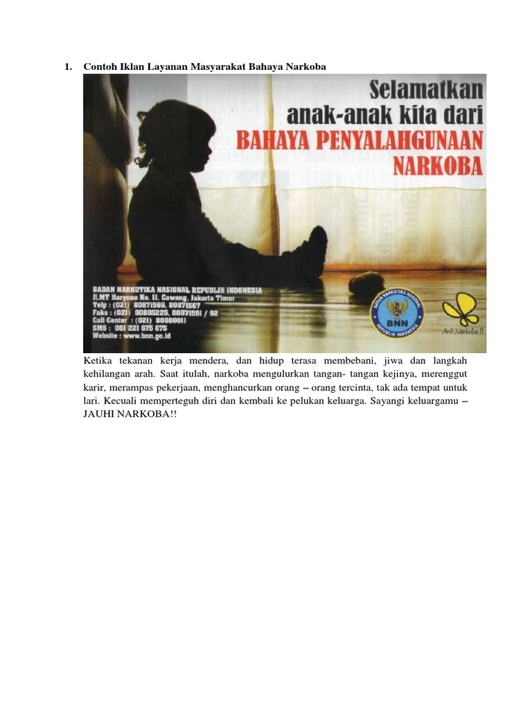 Contoh teks dan gambar iklan layanan masyarakat tentang bahaya merokok berikut ini merupakan contoh iklan layanan masyarakat tentang begitu tingginya bahaya merokok. Salah satu contoh teks iklan layanan masyarakat terkait bahaya merokok dapat dilihat di bawah ini. Itulah tujuan dari adanya iklan yang digunakan oleh instansi atau perusahaan. Setelah anda tahu bahaya merokok diharapkan anda segera meninggalkan rokok dan mulai membiasan diri untuk hidup sehat. 101 contoh iklan layanan masyarakat tentang narkoba rokok global warming dan lainnya. Dalam iklan ini akan diperlihatkan gambaran sebuah keluarga dimana yang berperan sebagai ayah adalah seorang perokok aktif.