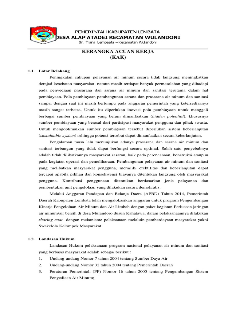 Berikut di bawah ini kami berikan contoh format kak lengkap untuk semua jenis pekerjaan seperti kak pemeliharaan kak pengawasan kak pekerjaan swakelola dan kak pengadaan barangjasa. Panitia berasal dari klpd sendiri perencanaan dilaksanakan sendiri juga pengawasan dilaksanakan sendiri. Dalam pelaksanaan penyelenggaraan kegiatan seperti diklat kursus penataran seminar lokakarya atau penyuluhan seluruh kegiatan memang dilaksanakan secara swakelola dan telah sesuai dengan definisi dari swakelola itu sendiri. Pemerintah kabupaten magelang u nit esselon. Kerangka acuan ke giatan kementerian negaralembaga. Dalam kak tercakup latar belakang maksud dan tujuan indikator keluaran dan keluaran cara pelaksanaan kegiatan pelaksana dan penanggung jawab kegiatan jadwal kegiatan dan biaya kegiatan.