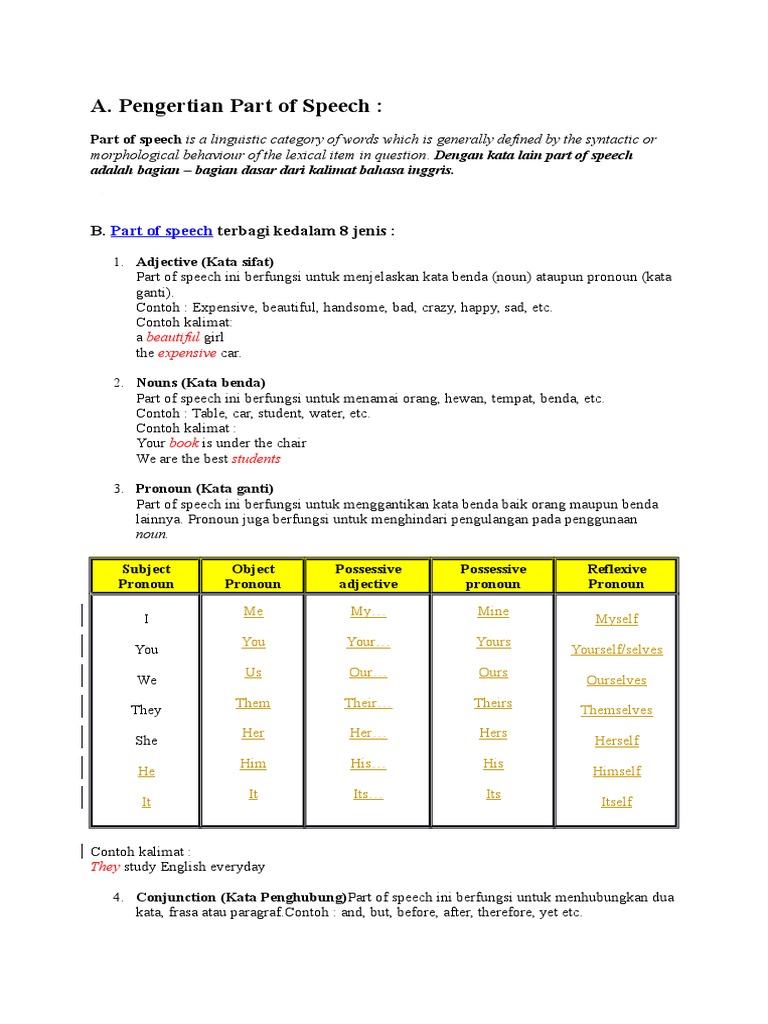 Kebetulan sekali dibawah ini admin memberikan 7 contoh pembuka dan penutup pidato dalam bahasa inggris. Part of speech adalah pengelompokan kata berdasarkan fungsi masing masing dalam sebuah kalimat. Macam macam parts of speech penggunaan dan contoh kalimat delapan part of speech 1. Dalam english grammar bagian bagian penting itu disebut parts of speech. Berdasarkan fungsinya dalam kalimat verb dibagi menjadi dua yaitu sebagai kata kerja bantu dan kata kerja utama. Riska adalah seorang siswa yang cerdas di kelas the hungry children ate burger.