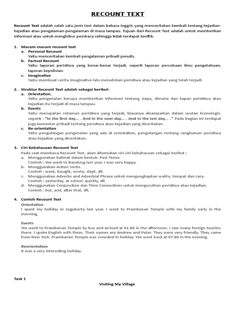 Contoh recount text bahasa inggris. Last weekend when holiday started unlike in previous holiday my family and i went t o my fathers hometown. Kali ini jenis teks yang akan dibahas adalah recount textapa itu recount textrecount text bertujuan untuk menceritakan kepada pembaca mengenai kejadian atau peristiwa yang sudah terjadi di masa lampau. Hi efriends apakah kamu tahu bahwa terdapat 13 jenis teks dalam bahasa inggrisbeberapa waktu yang lalu ef sudah memberikan contoh descriptive text dalam bahasa inggris. 10 contoh recount text holiday dan artinya terbaru halo sobat englishiana untuk belajar memahami kembali recount text yang telah kita bahas pada artikel yang berjudul recount text full materi contoh terbaru 2016 alangkah baiknya sobat baca contoh teks recount yang lain di bawah ini jika sobat masih bingung tentang bagaimana cara membuat recount text. Mungkin dengan berbagai contoh recount text ini sobat bisa lebih mengerti apa dan bagaimana cara terbaik menulis recount text.