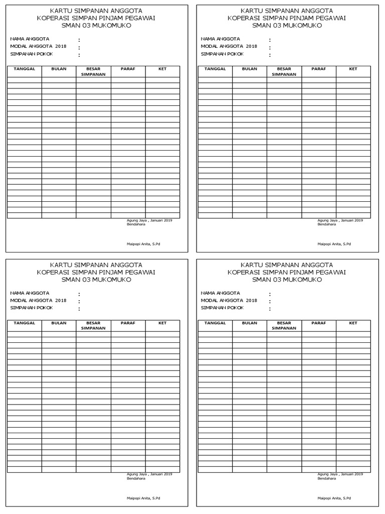 Percayakan urusan cetak mencetak kartu iuran setoran angsuran spp kartu pasien anda kepada kami. Contoh format instruksi kerja sebuah perusahaanmengadopsi lembar instruksi kerja untuk setiap anggota pekerja atau tim dari setiap pekerjaan atau proyek. Setiap koperasi harus memiliki anggota yang cakap dan mampu untuk melakukan setiap tanggung jawab dalam kegiatan sehari hari koperasi. Namun untuk memperoleh gambaran anda bisa melihat tabel angsuran pinjaman swamitra bukopin di bawah ini. Nantinya hal tersebut bisa anda jadikan sebagai acuan dalam melakukan pembukuan koperasi. 1010 am kartu angsuran kartu iuran kartu klinik kartu koperasi kartu pasien kartu setoran kartu simpan pinjam kartu spp 8 comments.