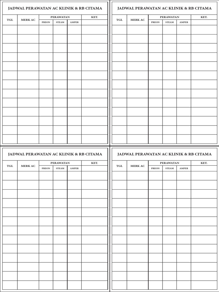 Contoh kartu pemeliharaan ac. Seri ruanganlokasi no tanggal. Rizka norisa 26 romario denis k27 rosalya n 28 salis a 29 septiana l 30 siska tri y 31 no kartu. Kartu pemeliharaan air condition th 2011. Latar belakang undang undang republik indonesia no. Lampiran 5 kartu pemeliharaan barang tahun 2013. Uraian pekerjaan paraf petugas.