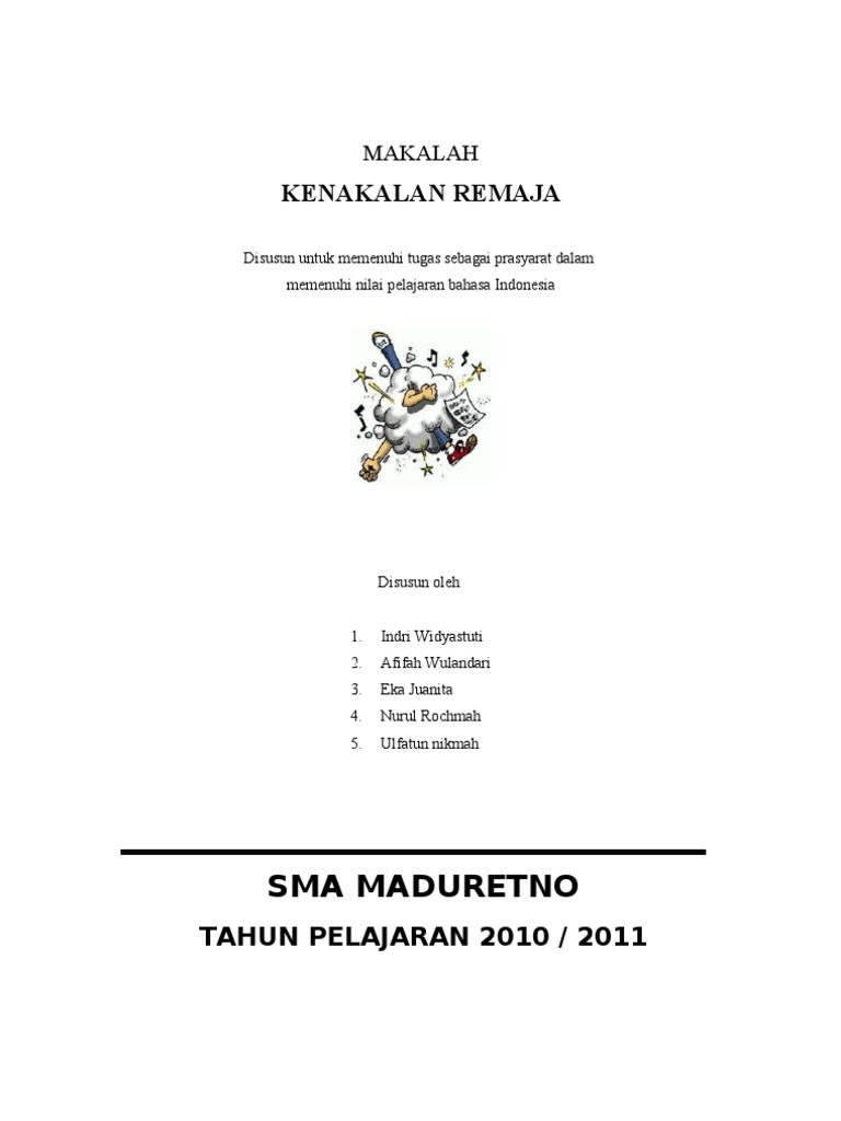 Contoh karya ilmiah tentang kenakalan remaja. Tugas karya tulis yang diberi judul kenakalan remaja ini ialah suatu karya tulis yang terbentuk dari hasil kerja saya dimana tugas ini merupakan tugas dari aspek penilaian mata pelajaran bahasa indonesia. Secara garis besar karya ilmiah remaja merupakan karya tulis yang dibuat oleh pelajar setingkat smp dan sma yang mengangkat tentang suatu permasalahan di sekitar kita disertai dengan solusi dan penyelesaiannya. Karya ilmiah tentang kenakalan remaja. Kenakalan remaja kenakalan remaja dalam studi masalah sosial dapat dikategorikan ke dalam perilaku menyimpang. Perilaku menyimpang dapat dianggap sebagai sumber masalah karena dapat membahayakan tegaknya sistem. Pengertian ciri contoh penyebab dan solusinya lengkap dalam kehidupan sehari hari kita sering sekali melihat kenakalan remaja misalnya tawuran antar sekolah tawuran antar sekolah merupakan salah satu dari kenakalan remajapada kesempatan kali ini disini akan mengulas tentang kenakalan remaja secara lengkap.