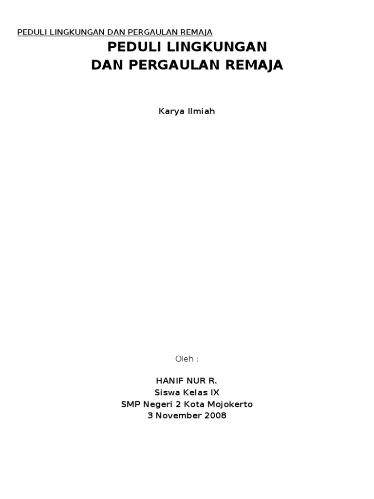 Kumpulan contoh karya tulis ilmiah remaja sma sebelum lebih lanjut kira kira apa itu karya ilmiah remaja kir. Karya ilmiah ini disusun agar pembaca dapat memperluas ilmu tentang kenakalan remaja di era globalisasi ini yang kami buat berdasarkan dari berbagai sumbersemoga karya ilmiah kami dapat bermanfaat bagi para pembaca khusunya pelajardan mudah mudahan juga dapat memberikan pengetahuan yang lebih luas kepada pembacawalaupun masih banyak kekurangan kami mohon untuk dimaklumi dan diberikan.