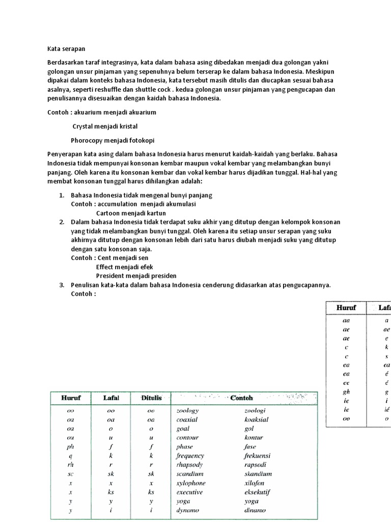 Kata serapan dalam bahasa indonesia. Bahasa indonesia tidak hanya mencakup kata kata asli melainkan juga memuat kata serapan dari bahasa asing. Kata serapan adalah kata yang berasal dari luar bahasa indonesia asing daerah yang di integrasikan ke dalam bahasa indonesia dan secara konvensional dapat diterima oleh masyarakat. Di bawah ini disajikan daftar kata kata arab dalam bahasa indonesia berikut dengan bentuk dan ejaan aslinya. Dalam bahasa sansekerta katha sebenarnya artinya adalah konversasi bahasa cerita atau dongeng. Tanpa perlu basa basi lagi berikut adalah uraian tentang jenis jenis kata serapan dan contohnya.