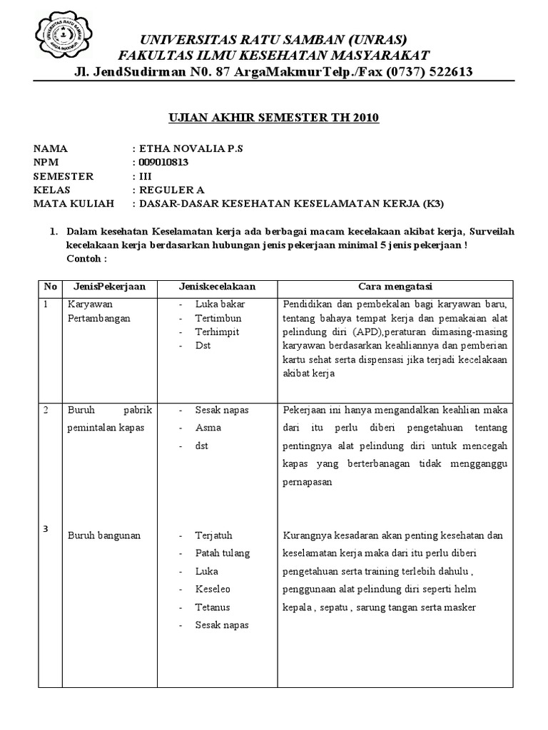 Contoh kecelakaan kerja dan cara mengatasinya. Kecelakaan kerja dapat menyebabkan kerugian bagi pekerja dan juga yang memperkerjakan. Maka dari itu mengidentifikasi bahaya kerja akan mengurangi bahka mencegah bahaya melalui pengedalian bahaya kerja yang dilakukan melalui hasil analisa identifikasi bahaya kerja. Kecelakaan karena alat pengangkutan dan lalu lintas penyebab kecelakaan kerja ini pada umumnya disebabkan oleh hal hal sebagai berikut. Pikirkan saja cara agar anda tidak terganggu dengan rekan kerja menyebalkan tersebut dan lebih fokus pada pengembangan diri sendiri. Pelaksanaan kesehatan dan keselamatan kerja k3 adalah salah satu bentuk upaya untuk menciptakan tempat kerja yang aman sehat bebas dari pencemaran lingkungan sehingga dapat mengurangi dan atau bebas dari kecelakaan kerja dan penyakit akibat kerja yang pada akhirnya dapat meningkatkan efisiensi dan produktivitas kerja. Dan bagi penambang haruslah mengikuti instruksi instruksi untuk mencegah terjadinya kecelakaan kerja.