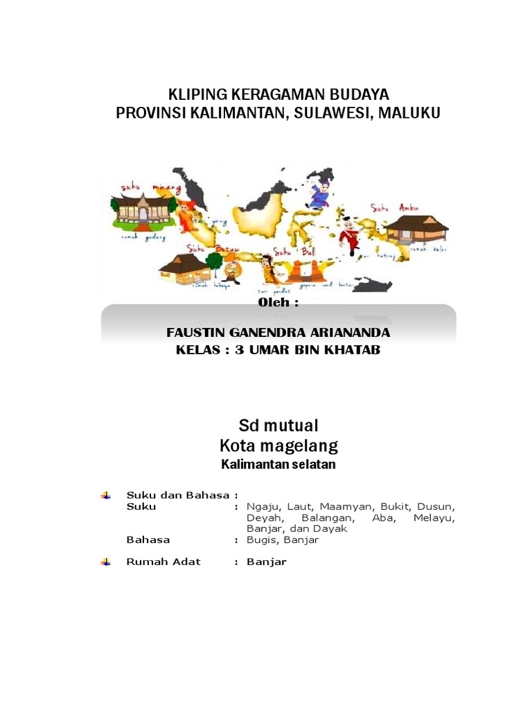 Contoh kliping keragaman budaya indonesia. Di dalam konteks yang dipahami oleh masyarakat majemuk di samping kebudayaan dan juga suku bangsa indonesia juga terdiri dari berbagai adat dan budaya daerah yang sifatnya lebih mengarah kepada kewilayahan yang menjadi pertemuan antara adat yang satu dengan yang lainnya. Namun indonesia bisa mempersatukan berbagai keragaman tersebut sesuai dengan semboyan negara indonesia yaitu bhineka tunggal ika yang artinya berbeda beda tapi tetap satu jua. Keragaman suku bangsa dan budaya merupakan kekayaan bangsa kita. Keragaman budaya indonesia merupakan negara kesatuan yang penuh dengan keberagaman dan kekayaanindonesia terdiri atas beraneka ragam suku budaya ras daerah kepercayaan agama dan lain lain. Pengertian seni rupa jenis jenis seni rupa. Kliping keragaman budaya indonesia 34 provinsi indonesia sangatlah kaya dengan keaneka ragaman istiadat pun budaya tentu saja hal tersebut disebabkan oleh distrik indonesia yang berbentuk kepulauan sehingga meningkatkan kekayaan dan keanekaragaman kebiasaan masing masing pulau.