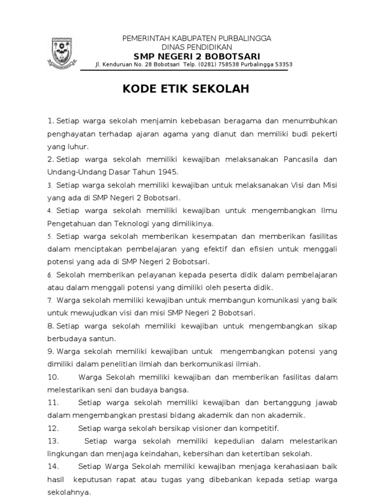 Contoh kode etik sekolah. Jalan candimulyo pakis km05 surodadi candimulyo magelang 56191. Isi dan bunyi kode etik profesi guru pgri secara lengkap pengertian tujuan fungsi sumpahjanji nilai dasar operasional hubungan guru dengan peserta didik orang tua masyarakat sekolah organisasi profesi dan pemerintah pelaksanaan pelanggaran dan sanksi. Sd negeri surodadi 1. Kode etik sekolah pemerintah kabupaten magelang. Kode etik sekolah sekolah yang menuju baik adalah yang bisa. Nss 101030815008 npsn.