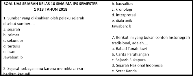 55 contoh soal uas sejarah kelas 10 smama dan kunci jawabnya terbaru halo sahabat bospedia yang baik hati pada kesempatan kali ini admin ingin berbagi contoh soal untuk mata pelajaran sejarah untuk adik adik yang sedang duduk dibangku kelas 10 smama beserta dengan kunci jawabannyasoal ini sudah admin sediakan dalam fotmat doc. Soal uji kompetensi sejarah kelas x semester 1 tulisan ini merupakan lanjutan contoh soal sejarah kelas 10 semester 1 dan kunci jawabannya pilihan ganda bagian ke 4 soal nomor 31 40. Kronologi sejarah kronologi adalah catatan kejadian kejadian yang diurutkan sesuai dengan waktu terjadinya. Materi sejarah secara etimologis sejarah berasal dari bahasa arab yaitu shajarah syajaratun tetapi dengan secara luas sejarah asal usul dari suatu skema yang dibuat sehingga kami memberikan contoh soal sejarah kelas x 10 sekolah menengah atas disemester 1 dan 2 dan jawabannya tingkat smamastm dan smk. Perlu bapak dan ibu guru ketahui bersama rpp kelas x kurikulum 2013 yang coba saya bagikan ini sudah di revisi terbaru menjadi lebih rapih namun dapat bapak ibu guru gunakan rebagai referensi contoh untuk pembuataan perangkat pembelajaran kelas 10 x jenjang sma tahun pelajaran 2019 2020.