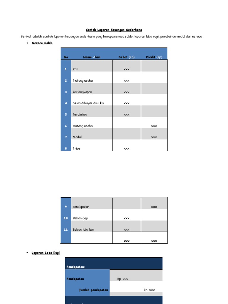 Contoh laporan keuangan sederhana. Laporan keuangan dari perusahaan ibu anggi ini berupa. Laporan keuangan via ttucacke. Contoh laporan keuangan perusahaan sederhana laporan keuangan adalah suatu laporan yang berguna untuk menyampaikan informasi keuangan yang dapat dipercaya kepada pihak yang berkepentingan. Definisi resmi dari badan pengatur standar akuntansi menyebutkan bahwa laporan keuangan adalah suatu penyajian terstruktur dari posisi keuangan dan kinerja keuangan suatu entitas. Perlu diketahui untuk membuat laporan keuangan anda tidak bisa terlepas dengan ilmu akuntansi. Cara sederhana dan mudah untuk mengetahui perkembangan bisnis anda adalah melalui laporan keuangan.