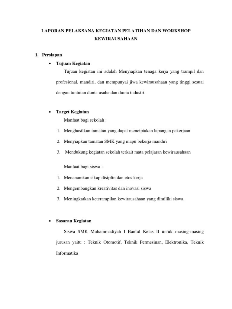 Contoh laporan kewirausahaan smk. Ibu sri spd selaku guru kewirausahaan sekaligus sebagai pembimbing penyusunan laporan. Ag selaku kepala sekolah smk maarif nu limpung yang telah memberikan ijin untuk menyusun laporan. Susaanta mm selaku kepala sekolah smk n 2 surakarta yang telah memberikan ijin untuk menyusun laporan. Tugas cerpen cerita pendek bahasa indonesia dan un. Contoh proposal kewirausahaan smk negeri 1 purworejo kata pengantar. Usaha ini didasari oleh tugas kelompok kewirausahaan dimana tugas ini dikerjakan secara berkelompok.