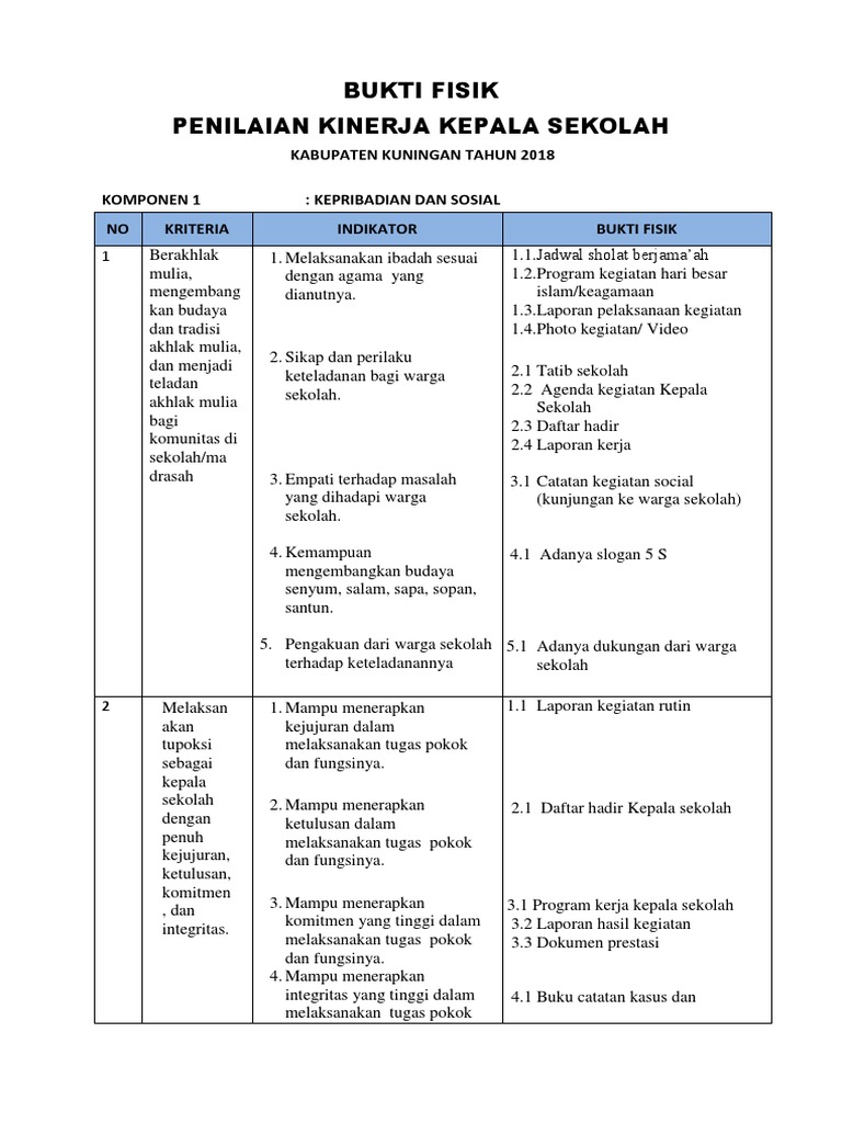 Bukti Fisik Penilaian Kinerja Kepala Sekolah