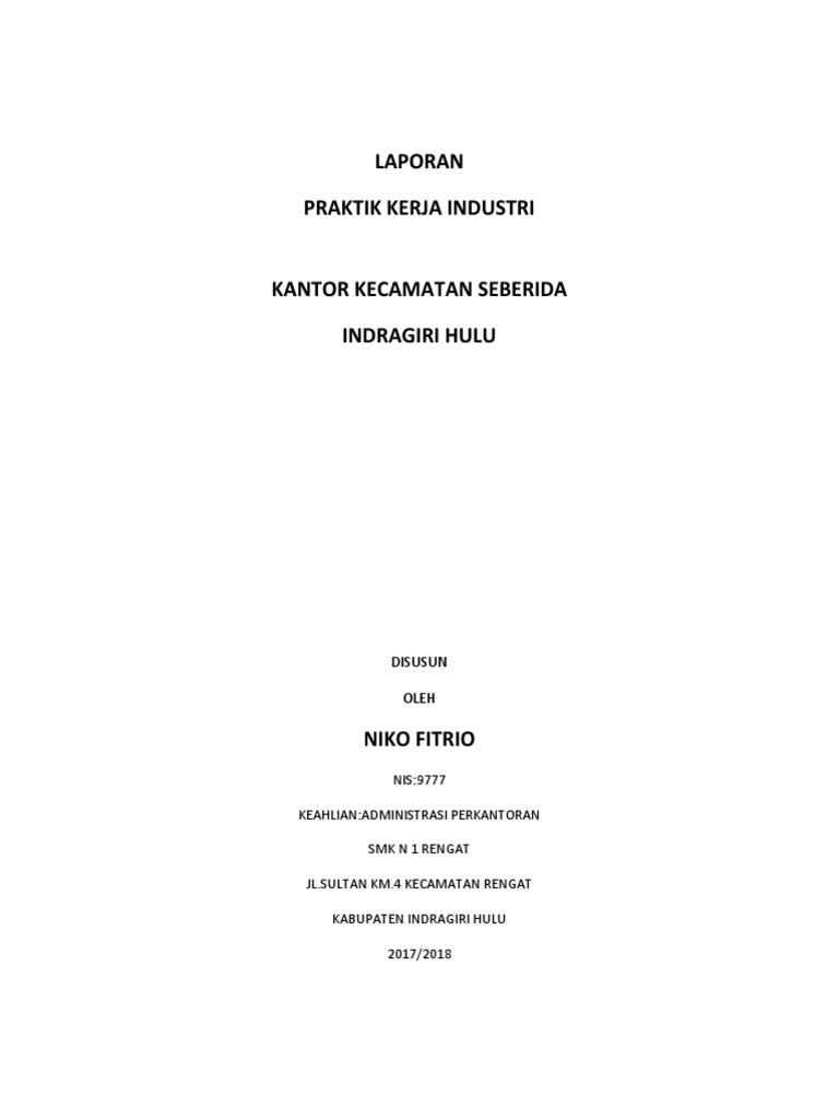 Contoh laporan prakerin di kecamatan pengesahan. Pelaksanaan praktik kerja industri prakerin di kantor kecamatan kembang yang dilaksanakan pada tanggal 22 desember 2014 27 februari 2015 dapat berjalan dengan. Laporan hasil praktik kerja industri.