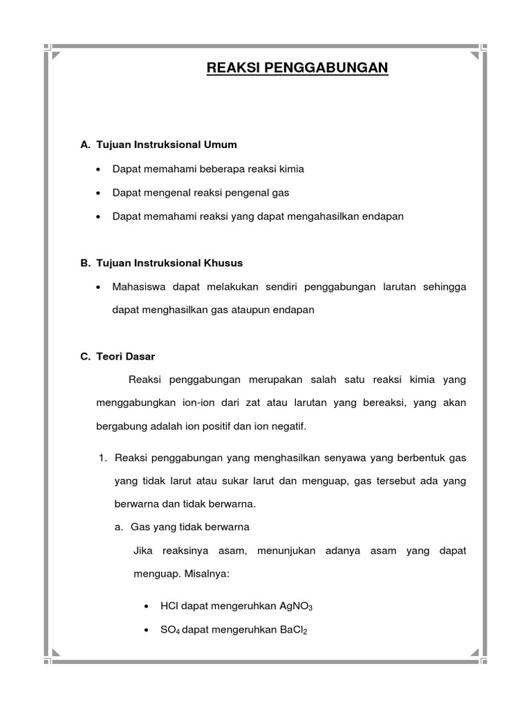 Namun secara umum format laporan praktikum hampir sama dengan makalah. Unknown lihat profil lengkapku. Judul percobaan pengenalan larutan asam dan basa b. Contoh senyawa yang termasuk pada asam yaitu. Tujuan percobaan mengetahui ciri ciri asam dan basa c. Laporan lengkap praktikum kimia percobaan i a.