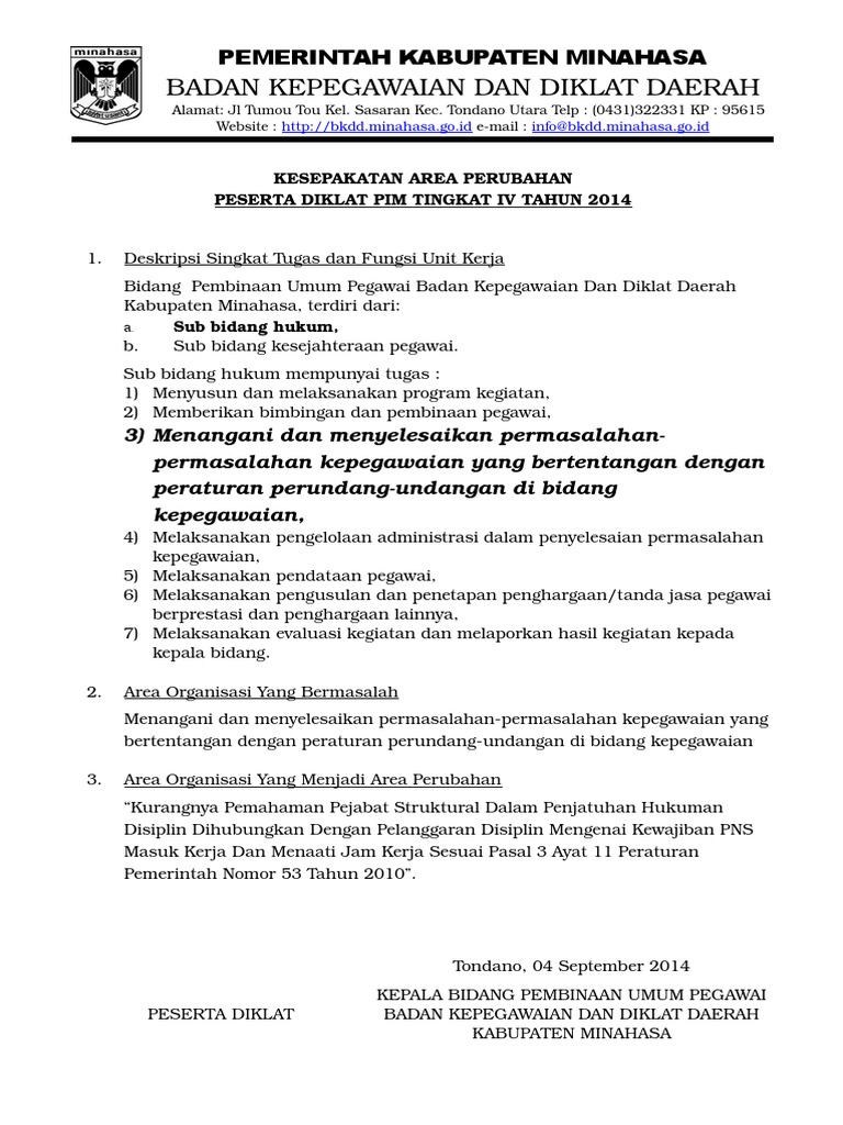 Contoh laporan proyek perubahan diklat pim iv pola baru. Contoh pelaporan proyek perubahan diklat pim iv. Contoh pelaporan proyek perubahan diklat pim iv. Tindak lanjut dari proyek perubahan setelah peserta kembali ke unit kerja masing masing. Downloade contoh proyek perubahan pim iv pola baru tahun 2016 alhamdulillah kami panjatkan puja dan puji syukur kepada tuhan yang maha esa yang telah memberikan kesehatan keselamatan kepada kami sehingga kami dapat menyelesaikan proposal proyek perubahan dari awal sampai saat ini di pusat pendidikan dan pelatihan kepemimpinan tingkat iv angkatan 1 regional bukittinggi. Kata pengantar puji serta syukur penulis panjatkan kepada tuhan yang maha esa karena hanya dengan ridho dan rahamatnya makalah sistem teknologiinformasi ini dapat terselesaikan tepat pada waktunya dan berkat karunianya penulis dapat menyelesaikan laporan akhir implementasi proyek perubahan dengan judul. Begitulah yang dapat admin bagikan terkait contoh laporan proyek perubahan diklat pim 3 pola baru.
