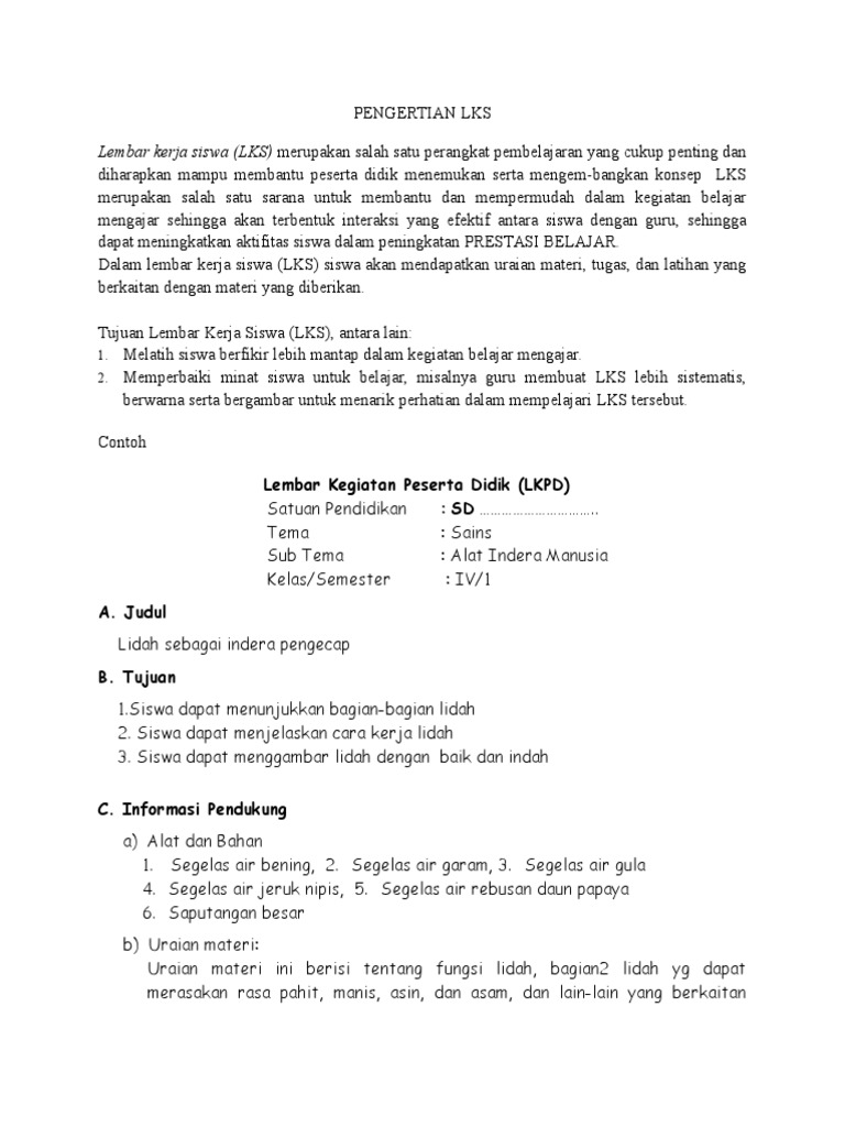 Contoh lembar kerja peserta didik. Pengertian lembar kerja siswa lks lembar kerja siswa lks adalah lembaran yang berisi tugas yang harus dikerjakan oleh peserta didik. Lembar kerja peserta didik lkpd sebagai salah satu bentuk sarana berlangsungnya proses belajar mengajar haruslah memenuhi persyaratan didaktik artinya suatu lkpd harus mengikuti asas belajar mengajar yang efektif yaitu. Lembar kerja peserta didik lkpd sebagai salah satu bentuk sarana berlangsungnya proses belajar mengajar haruslah memenuhi persyaratan didaktik artinya suatu lkpd harus mengikuti asas belajar mengajar yang efektif yaitu. Pengembangan lembar kerja peserta didik lkpd pendahuluan pada kurikulum 2013 semua mata pelajaran harus berkontribusi terhadap pembentukan sikap keterampilan dan pengetahuan. Memperhatikan adanya perbedaan individual sehingga lkpd yang baik itu adalah yang dapat digunakan baik oleh peserta didik yang lamban yang sedang maupun yang pandai. Lembar kerja siswa tak berstruktur adalah lembaran yang berisi sarana untuk materi pelajaran sebagai alat bantu kegiatan peserta didik yang dipakai untuk menyampaikan pelajaran.