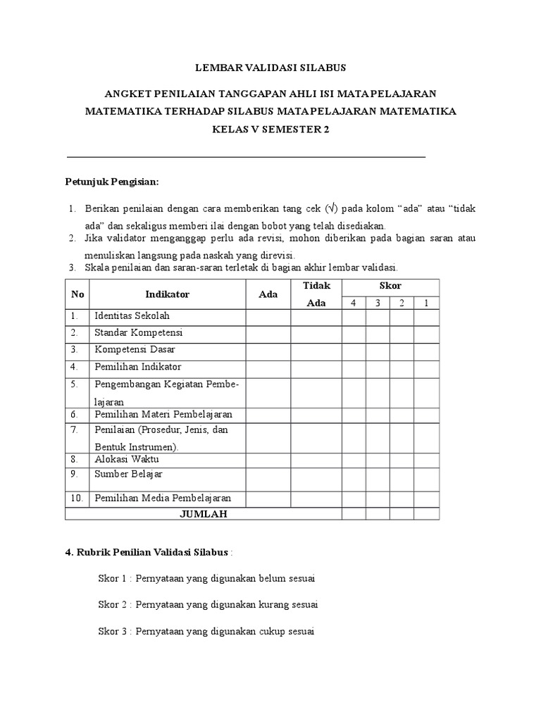 Contoh lembar validasi media pembelajaran. File guru co id. Contoh lembar validasi media pembelajaran biologi. Memvalidasi media pembelajaran yaitu suatau tindakan pembuktian dalam bentuk saluran yang digunakan untuk menyalurkan pesan informasi atau bahan pelajaran kepada penerima pesan atau pembelajaran dengan cara yang sesuai bahwa setiap bahan prosedur kegiatan sistem perlengkapan atau mekanisme yang digunakan dalam prosedur dan pengawasan sehingga akan senantiasa mencapai hasil yang diinginkan. Contoh file berikut ini adalah kumpulan dari berbagi sumber tentang contoh lembar validasi media pembelajaran biologi yang bisa bapakibu gunakan dan diunduh secara gratis dengan menekan tombol download biru dibawah ini. Berikut ini adalah file tentang contoh lembar validasi media pembelajaran yang bisa bapakibu unduh secara gratis dengan menekan tombol download pada tautan link di bawah ini.