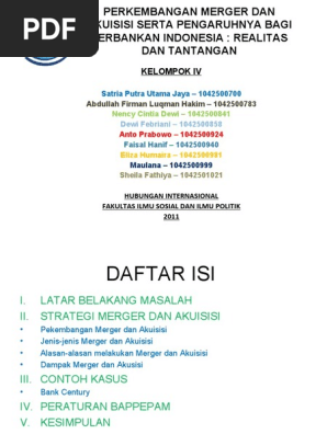 Selamat siang saya sedang melakukan penelitian yang berkaitan dengan merger dan akuisisi. Tujuan merger akuisisi dan konsolidasi tidak lain adalah untuk mencapai pertumbuban bisnis memperkuat sistem struktur perusahaan diversifikasi produk dan meningkatkan kekuatan bisnis dalam persaingan. Tahun 2008 lippo bank merger dengan bank cimb niaga. Dimanakah saya bisa mendapatkan list dari tahun 2002. Seperti menjamurnya contoh perusahaan modal ventura berikut beberapa contoh kasus peusahaan merger yang bisa di temui di indonesia. Perbedaan merger konsolidasi dan akuisisi.