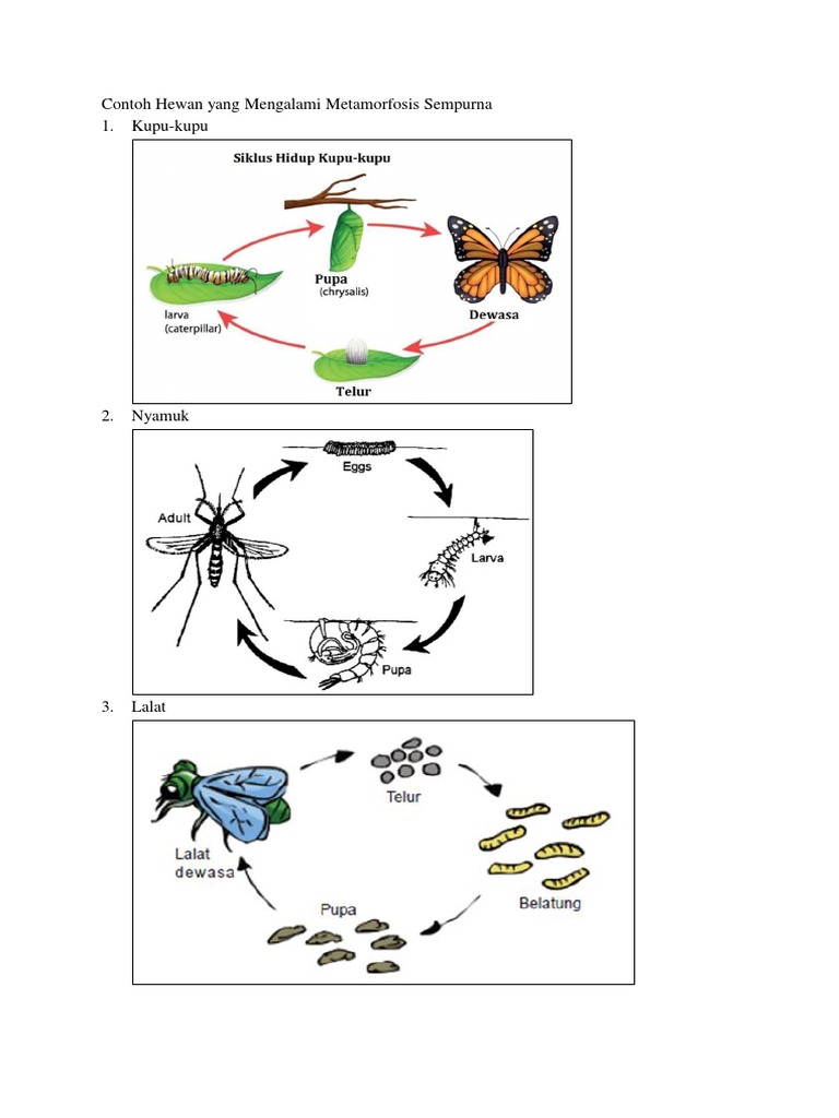 Sementara metamorfosis tidak sempurna adalah metamorfosis yang hanya melalui 3 stadium saja dalam prosesnya yaitu stadium telur larva atau nimfa dan stadium imago tanpa melalui stadium pupa. Contoh metamorphosis sempurna yaitu terjadi pada kataknyamuk dan kupu kupu. Tentu saja berdampak pula pada pola hidup komunikasi bahkan insting yang mereka miliki. 50 daftar hewan terkecil di dunia lengkap dengan gambarnya. Pada umumnya istilah matamorfosis merujuk pada dua. Contoh gambar dan proses tahapan metamorfosis tidak sempurna pada rayap rayap merupakan serangga dengan metamorfosis tidak sempurna.