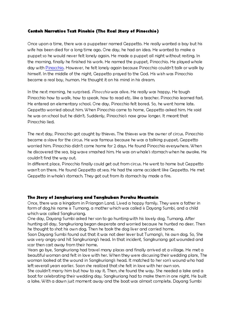 Contoh narrative text narrative text adalah salah satu jenis teks dalam bahasa inggris yang termasuk ke dalam reading skill. Diskusi kita tentang narrtive text ini meliputi pengertian narrative text dalam bahasa i nggris dan terjemahannya narrative text definition generic structure of narrative text serta yang paling utama adalah contoh narrative. The story of ugly duckling the story of monkey and crocodile. Contoh contoh text narrative tersebut adalah. Kali ini kita akan membahas 21 lebih contoh narrative text yang ditulis dalam 2 bahasa lengkap dengan berbagai macam tema mulai dari narrative text singkat legend tentang malin kundang cinderella sampai fable tentang the and and the grasshopper. Generic structure contoh narrative text fable 1.