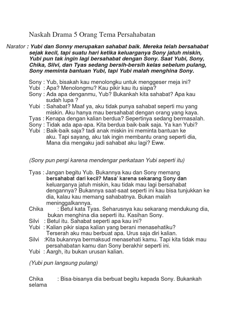 Contoh naskah drama komedi lima orang tentang persahabatan lucu singkat pendek panjang musikal bahasa jawa sepuluh orang 5 6 7 8 9 10 lengkap. The following english text of this drama is drama in english for 5 people.