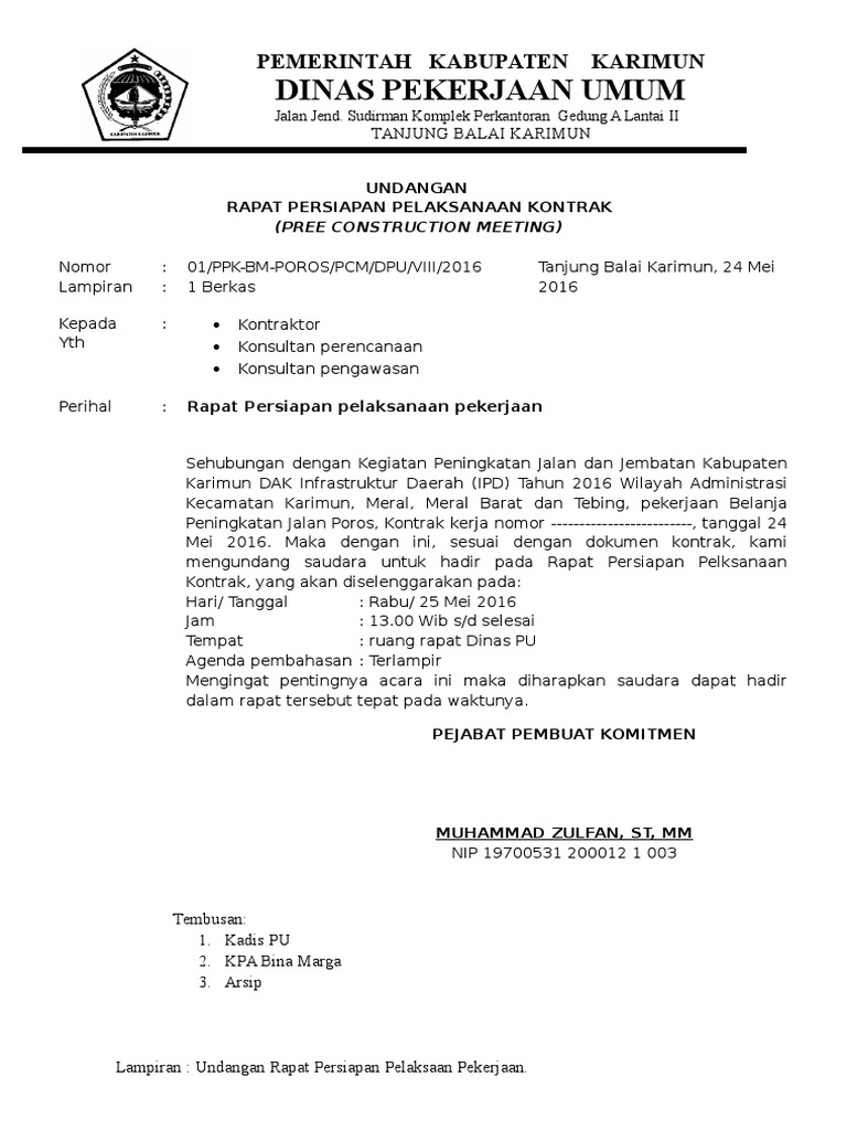 Peserta rapat persiapan pelaksanaan pekerjaan peserta rapat sekurang kurangnya terdiri atas unsur ppk penyediat unsur perencanaan. Contoh notulen yang benar untuk anda yang terbiasa melakukan kegiatan berorganisasi seperti seminar diskusi maupun rapat tentu sudah tidak asing lagi dengan yang namanya notulen dan berita acaraunuk masalah berita acara rapat sudah pernah kita bahas di postingan sebelumnya oleh sebab itu kali ini kita akan membahas cara membuat notulen yang baik dan benar. Melakukan pengawasan pelaksanaan metode kerja setiap kegiatan pekerjaan jembatan. Pcm dihadiri antara lain oleh penyedia konstruksi ppk tim teknis konsultan perencana konsultan pengawas wakil ppk dilapangan serta tidak lupa pphp panitia penerima hasil pekerjaan. Contoh bagan alir review design pekerjaan jalan dan jembatan proyek eirtp loan ibrd 4643 ind b4. Bagan alir rapat persiapan pelaksanaan pre construction meeting b2.
