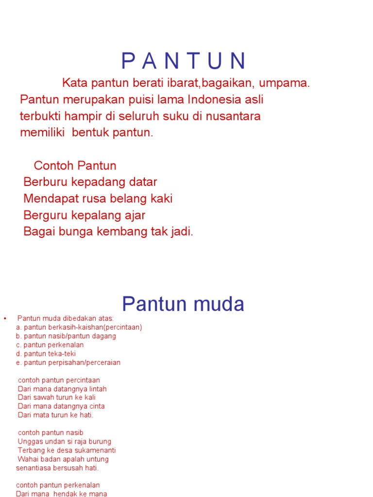 Contoh pantun 2 bait. Contoh pantun pendidikan dalam bahasa indonesia pantun adalah salah satu diantara jenis jenis puisi lama selain macam macam syair dan penjelasannyapantun sendiri juga mempunyai beberapa jenis dimana tiga diantara jenis jenis pantun tersebut antara lain contoh pantun talibun pantun berkait dan contohnya dalam bahasa indonesia serta contoh pantun karmina. Artikel tentang pantun berbalas yang lucu dan bermakna yang memberikan nasehat lengkap dengan pengertian dan fungsi contoh dan gambar. Pantun jenaka pengertian pantun jenaka adalah pantun yang memiliki tujuan untuk menghibur orang yang mendengar kadang kala dijadikan sebagai sarana untuk saling menyindir didalam kondisi yang penuh keakraban. Contoh pantun jenaka anak contoh pantun jenaka contoh pantun jenaka anak contoh pantun contoh pantun nasehat contoh pantun jenaka contoh pantun cinta contoh pantun budi contoh pantun agama contoh pantun nasihat contoh pantun adat. Berikut ini contoh pantun cinta yang romantis abis. Agar tidak mengundang rasa tersinggung dan bersama dengan pantun jenaka dapat membuat kondisi akan jadi tambah meneyenangkan.