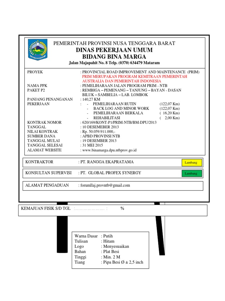 Simpan simpan papan nama proyekpdf untuk nanti. Terkait dengan tujuan tersebut salah satu peraturan yang diterapkan adalah wajibnya pemasangan papan nama pengumuman oleh para pelaksana proyek sesuai dengan prinsip transparansi anggaran. Oleh karena itu ane tim percetakan dan digital printing ingin membantu bagi yang akan membuat papan proyek silahkan download contoh filenya gratis format cdr corel x4 lakukan pengeditan sesuai dengan juklan juknisnya ukuran papan proyek ini rata rata 80 cm x 60 ada juga yang 1 m x 08 m.