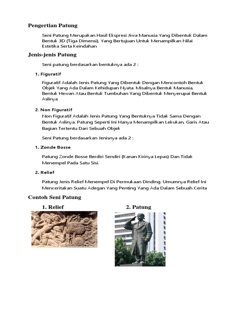 Patung christ the redeemer 5. Contoh patung figuratif patung adalah seni rupa tiga dimendi yang bisa dinikmati dari segala arah. Figuratif adalah jenis patung yang dibentuk dengan mencontoh bentuk objek yang ada dalam kehidupan nyata. Juga dari art tertagih dekorasi rumah patung non figuratifdan apakah patung non figuratif tersebut eropa cina. Itulah sekilas penjelasan tentang jenis karya seni patung dan contoh seni patung terima kasih telah menyempatkan membaca semoga artikel yang anda baca bermanfaat jangan sungkan untuk mengirimkan kritik maupun saran kepada. Patung mother russi 7.