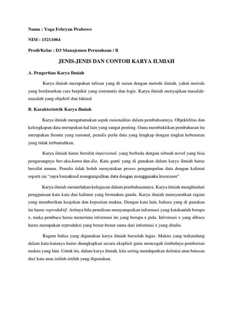 Contoh karya ilmiah ilmiah remaja sederhana dan kesehatan materi pembahasan kali ini mengenai contoh karya ilmiah yang akan kami jabarkan dengan lengkap mulai dari pengertian ciri macam tujuan manfaat dan contohnya. Contoh karya ilmiah tentang sampah pemanfaatan kembali sampah bab i. 24 sistematika penulisan karya ilmiah. Nah untuk lebih jelasnya mari langsung aja simak ulasannya dibawah ini. Dari segi jumlah halaman makalah dapat dibedakan antara makalah panjang dan makalah pendek. Pengertian pembahasan dan contoh karya ilmiah a.