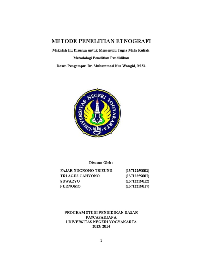 Contoh penelitian etnografi pdf. Dalam konteks yang luas ethnography is a written description of a particular culture the customs beliefs and behavior based on information collected. Penelitian ini bertujuan mendeskripsikan. 1 pengembangan budaya sekolah dasar negeri sdn kasihan bantul dalam pembentukan karakter siswa 2 pengintegrasian unsur penilaian pendidikan karakter dalam kegiatan sehari hari di sekolah dasar secara utuh 3 bentuk kegiatan siswa dalam pelaksanaan pendidikan karakter melalui budaya sekolah dan 4 hubungan pergaulan antarwarga sekolah. Contoh penelitian etnografi pdf. Seorang etnografer tak hanya mengamati namun juga berupaya untuk menyatu dalam kehidupan kultural suatu kelompok masyarakat. Metode penelitian ini sangat kontekstual dan berusaha untuk menemukan kepentingan sosial dan budaya dari kelompok atau organisasi sosial yang sedang dipelajari.