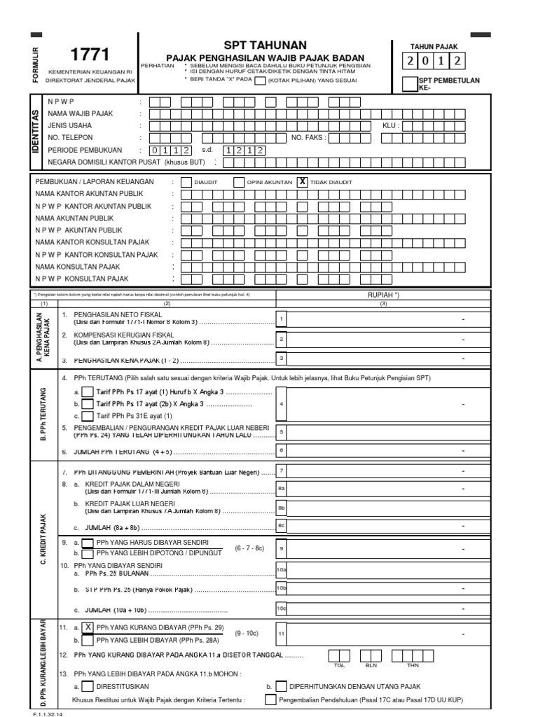 Contoh pengisian spt tahunan pph badan 1771 final. Spt tahunan pph badan 1771. Sudahkah kalian melaporkan spt tahunan badan. Contoh pengisian spt tahunan pph badan 1771 non final pt. 3 petunjuk pengisian spt tahunan pph badan menggunakan format yang dapat dibaca dengan menggunakan mesin pemindai scanner untuk itu perlu diperhatikan hal hal sebagai berikut. Video berikut menjelaskan simulasi pengisian e spt pph tahunan badan untuk wp dengan penghasilan final. Contoh pengisian spt tahunan pph badan 1771 final spt tahunan merupakan laporan pajak yang disampaikan satu tahun sekali oleh wajib pajak kepada yang berhubungan dengan perhitungan dan pembayaran pajak penghasilan objek pajak penghasilan bukan objek pajak penghasilan ataupun harta dan kewajiban sesuai dengan peraturan pajak untuk satu tahun pajak atau bagian dari tahun pajak.