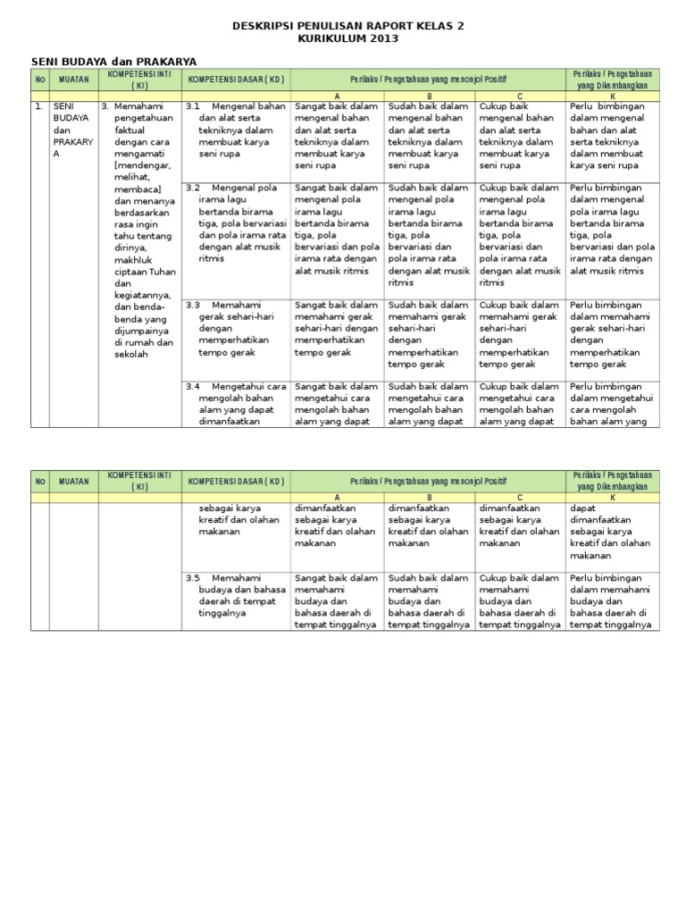 Berkas paud contoh deskripsi narasi raport tk sesuai kurikulum 2013. Contoh penulisan deskripsi raport kurikulum 2013 revisi 2016 hasil penilaian pencapaian sikap oleh pendidik disampaikan dalam bentuk predikat atau deskripsi penilaian aspek pengetahuan dilakukan melalui tes tertulis tes lisan dan penugasan sesuai dengan kompetensi yang dinilai penilaian keterampilan dilakukan melalui praktik produk proyek portofolio danatau teknik lain sesuai dengan. Deskripsi raport ini untuk memberikan penjelasan mengenai capaian kompetensi yang telah diraih anak dalam pembelajaran. Contoh deskripsi raport kurikulum 2013 bahasa inggris. Membuat deskripsi pada nilai suatu mata pelajaran itu berdasarkan nilai setiap kd kompetensi dasar. Dua orang siswa sama sama dapat nilai 365 misalnya belum tentu deskripsinya.