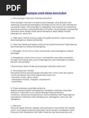 Contoh penyimpangan sosial pengertian penyimpangan sosial adalah perilaku yang tidak sesuai dengan norma dan nilai niali kesusilaan baik dalam sudut pandang kemanusiaan dan agama secara individu maupun secaraa kelompok sebagai bagian daripada makhluk sosial. Di jepang penumpang kereta api harus berbaris dengan rapi dan mengantre untuk menunggu giliran masuk. Sebagai contoh seperti perampokan pembunuhan dan kegiatan kriminal lainnya. Sebagai contoh penyimpangan sosial positif seperti wanita berkarir. Penyimpangan sosial pengertian teori bentuk jenis contoh secara umum perilaku menyimpang merupakan semuan tindakan yang menyimpang dari norma norma yang berlaku di suatu sistem sosial dan menim bulkan usaha dari pihak yang berwenang dalam sistem itu untuk memperbaiki perilaku menyimpang tersebut. Penyimpangan negatif merupakan perilaku penyimpangan sosial yang melanggar nilai dan norma serta memberikan dampak negatif bagi diri sendiri maupun masyarakat.