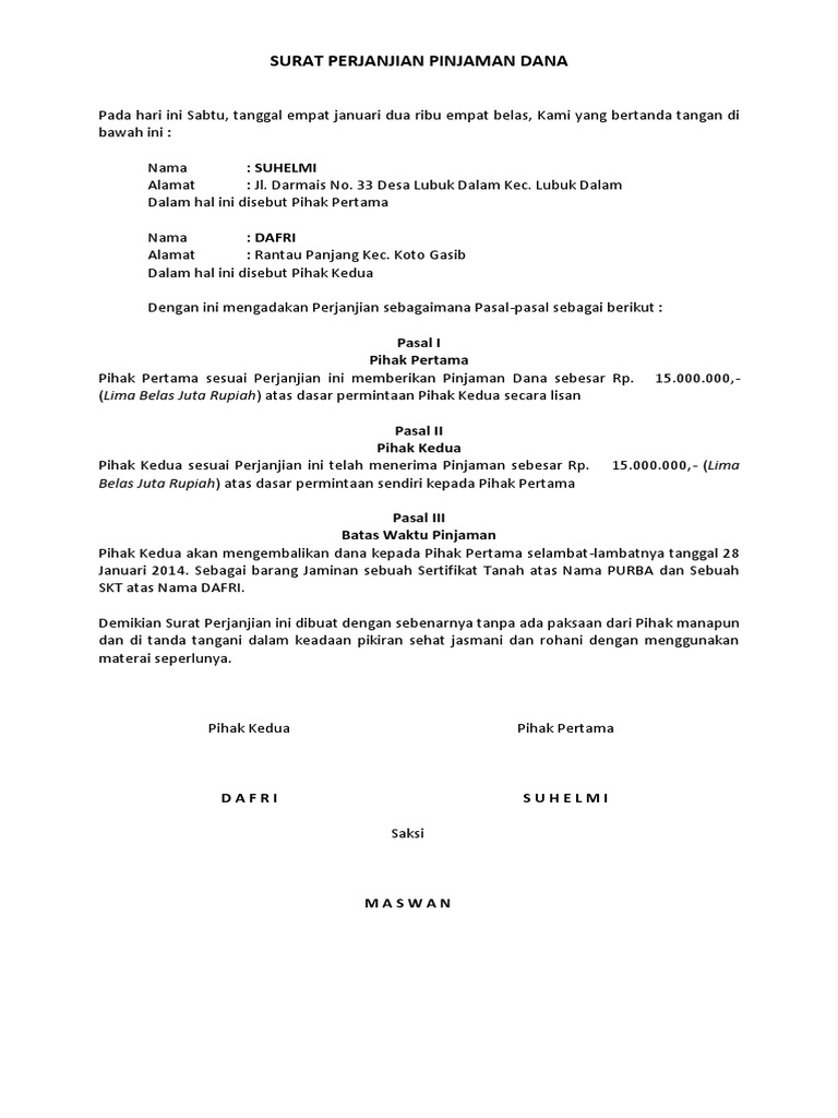 Contoh surat perjanjian kredit bank contoh surat perjanjian kredit bank hallo sahabat pada artikel yang anda baca kali ini dengan judul contoh surat perjanjian kredit bank kami telah mempersiapkan artikel ini dengan baik untuk anda baca dan ambil informasi didalamnya. Apabila fasilitas kredit ini dipergunakan tidak sesuai dengan keperluannya seperti yang tersebut di atas maka bank berhak secara sepihak untuk menghentikan perjanjian kredit ini dan debitur diwajibkan untuk membayar seluruh utangnya berikut bunga provisi denda denda dan biaya biaya lainnya dengan seketika dan sekaligus lunas dengan ketentuan bilamana. Academiaedu is a platform for academics to share research papers. Apabila perjanjian kredit telah ditandatangani namun fasilitas kredit tidak digunakan oleh debitor atau utang menjadi jatuh waktu karena sebab yang tercantum dalam pasal 14 ayat 3 perjanjian kredit atau terjadi kejadian sebagaimana diuraikan dalam pasal 18 ayat 3 perjanjian kredit maka pt. Perjanjian kredit itu sendiri mengacu pada perjanjian pinjam meminjam. Bank nama bank tidak berkewajiban untuk.