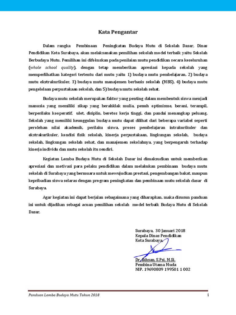 I pemerintah kota depok unit pelaksana teknis pendidikan kecamatan cilodong sekolah dasar negeri kalimulya 4 alamat. Penilaian administratif lomba manajemen berbasis sekolah mbs adalah mengukur kinerja sekolah dalam bidang mbs. Pada tahun 2019 ini pelaksanaan lomba budaya mutu meliputi berbagai kategori yaitu sekolah dasar rujukan sekolah dasar negeri sekolah dasar swasta dan sekolah dasar negeri wilayah 3t sebagai bentuk pembinaan sekolah dasar di semua wilayah indonesia. Kinerja sekolah yang disusun berupa naskah laporan dalam bentuk deskripsi dan dokumentasi mengenai kinerja sekolah bidang mbs sebagai hasil kajian dan asesmen yang mendalam dan bersifat internal sekolahlaporan tersebut disusun secara komprehensif lengkap sistematis dan mudah. Budaya mutu sekolah dasar tercermin padakomponen komponen. Academiaedu is a platform for academics to share research papers.