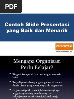 Contoh presentasi yang baik. Contoh bahasa inggris presentasi yang baik dapat memberikan anda pemahaman bagaimana membuat presentasi yang baik yang runtut logis dan mudah dipahami. Pada dasarnya sebelum kita membuat draft presentasi kita harus mengetahui dengan baik materi yang akan disampaikan serta target audience yang akan dihadapi. Sebuah slide seharusnya mampu menjelaskan ide dan gagasan yang ingin disampikan seorang presenter. Panduan lengkap untuk membuat presentasi yang baik. Mungkinkah slide presentasi powerpoint kuliah dibuat kreatif dan menarik. Artikel ini membahas contoh slide presentasi powerpoint yang baik dan menarik.